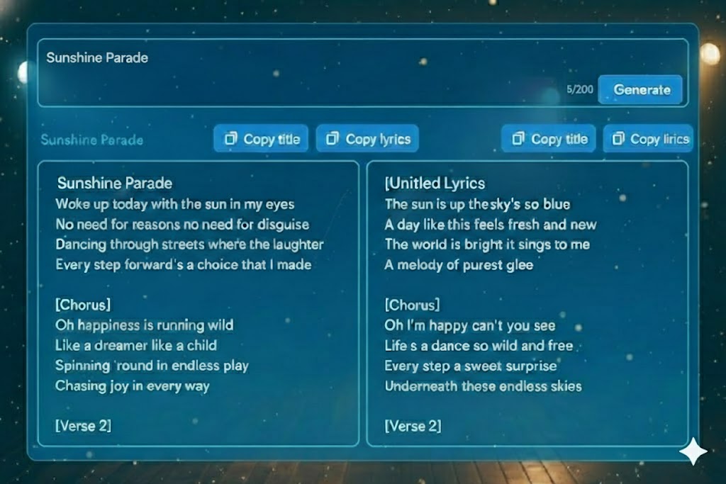 AI 歌词生成器可将您的灵感或主题转化为原创歌词,创作更快、更简单、更有创意,适合每个人使用。